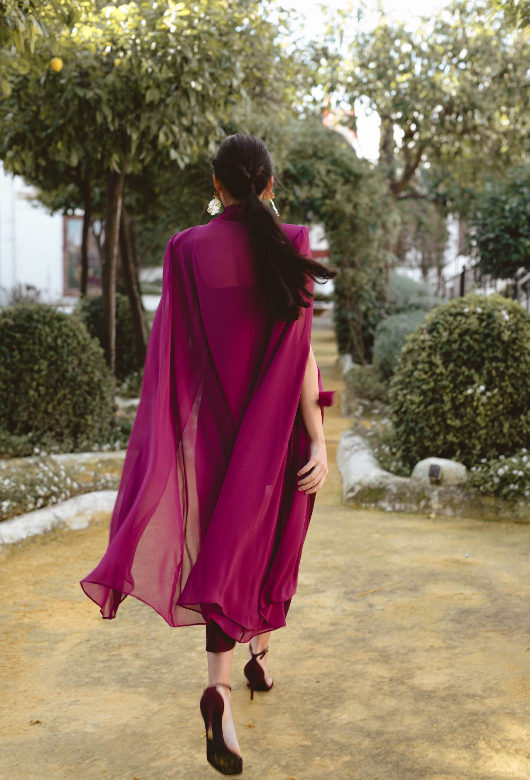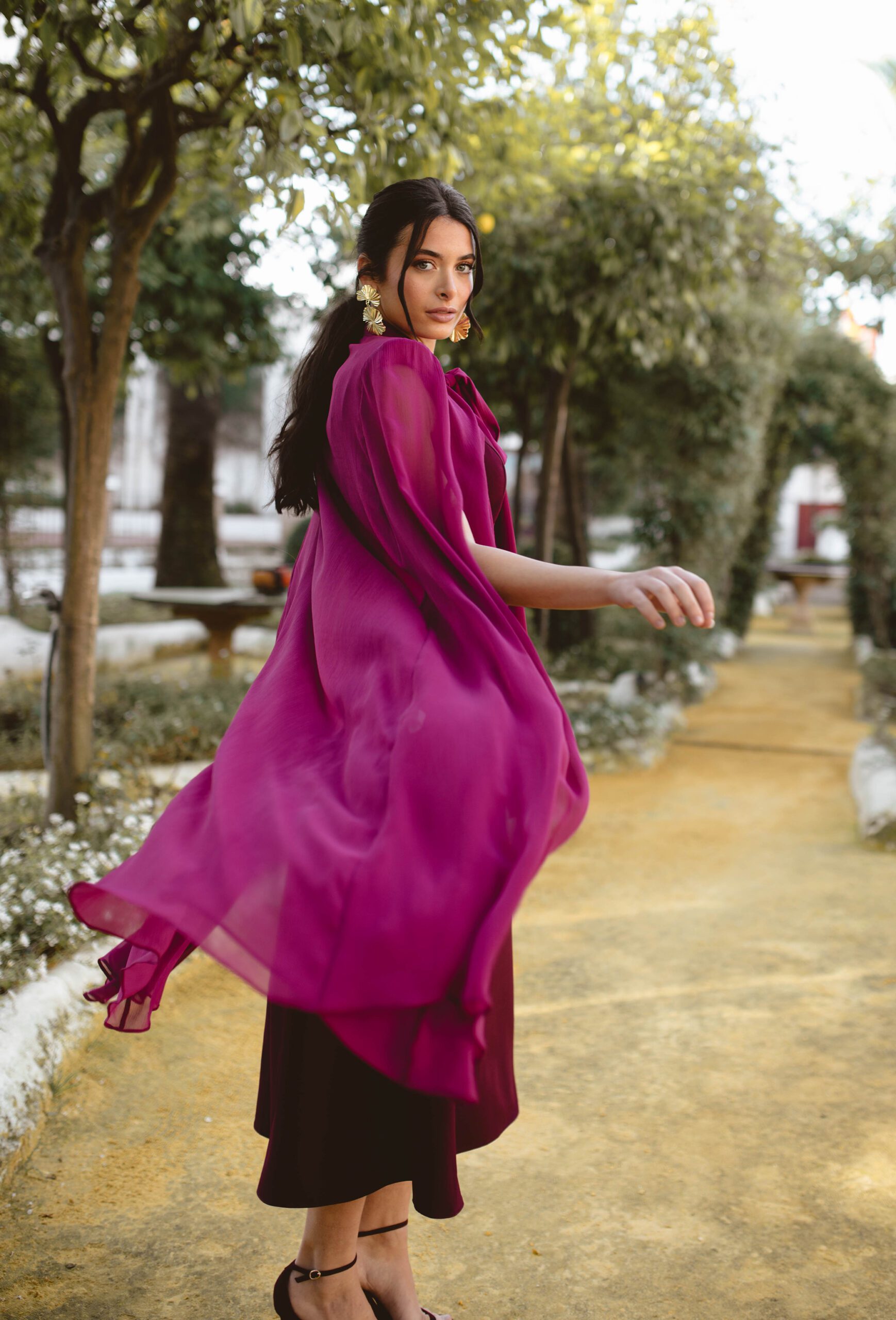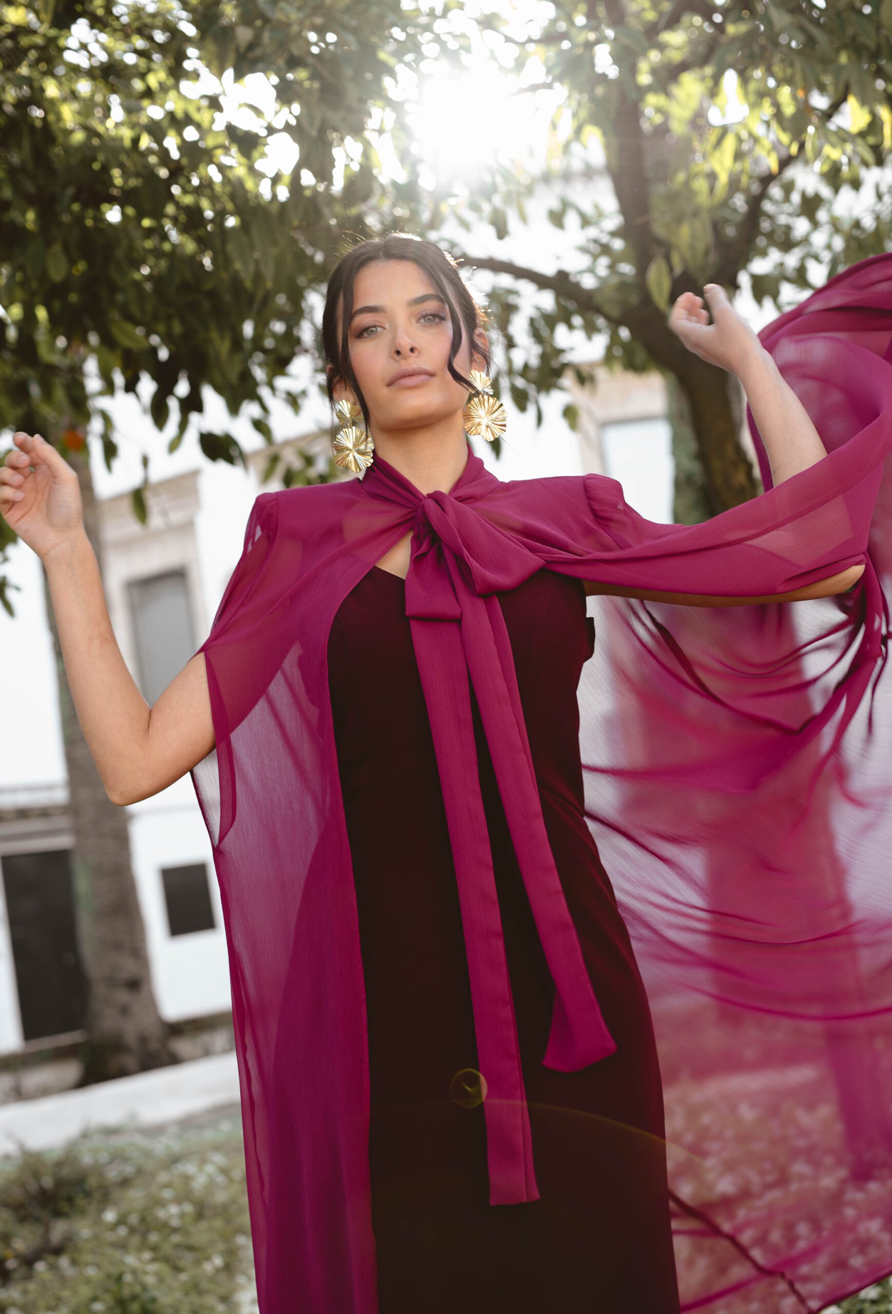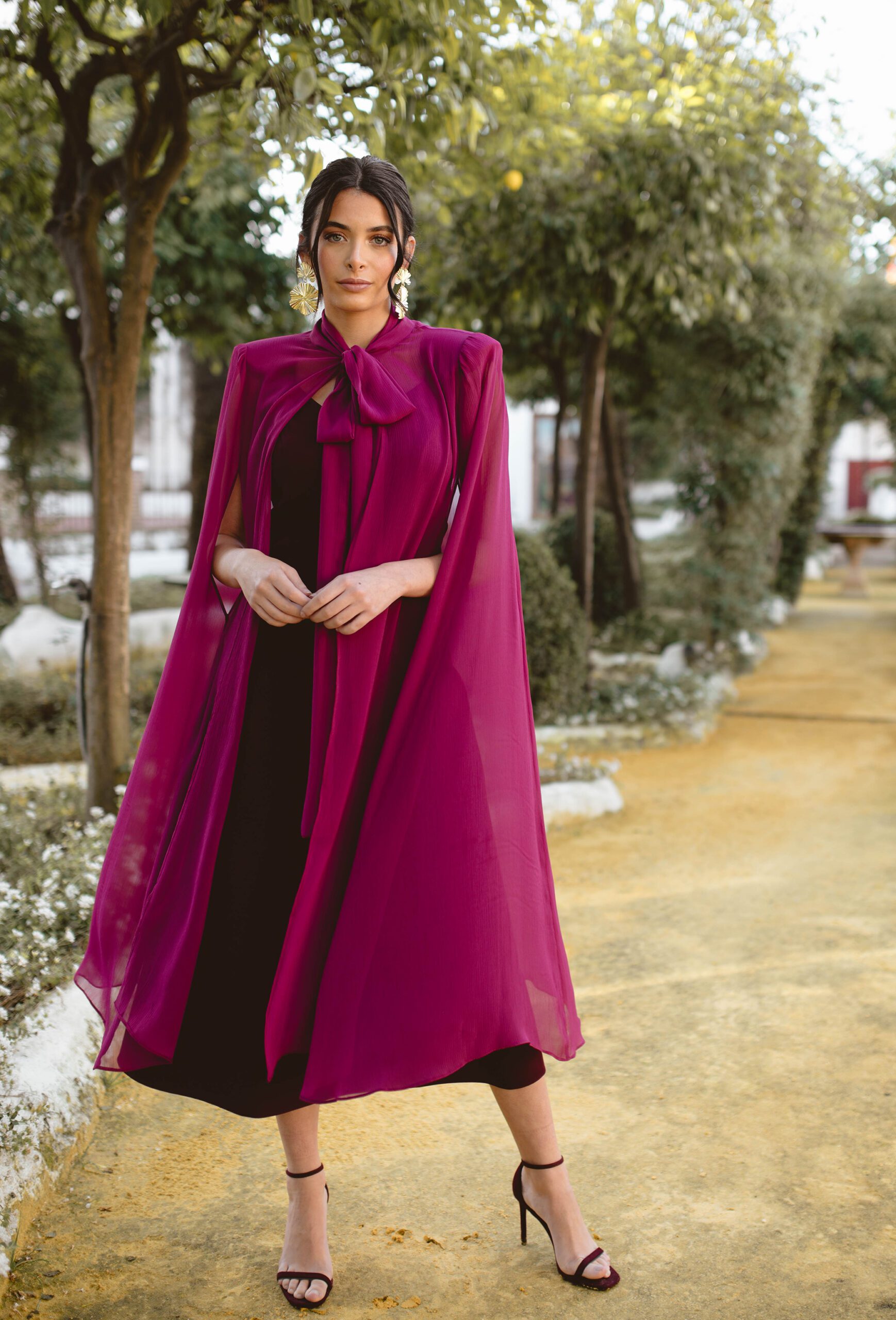 Esta capa en color Magenta es perfecta para complementar tu vestido de invitada y darle un toque especial y lleno de personalidad.